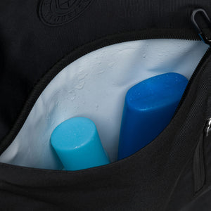 - Viršutinė kišenė su vandeniui atsparia danga – kosmetikai, higienos priemonėms ar daiktams, kurie gali sudrėkti.
