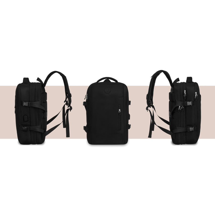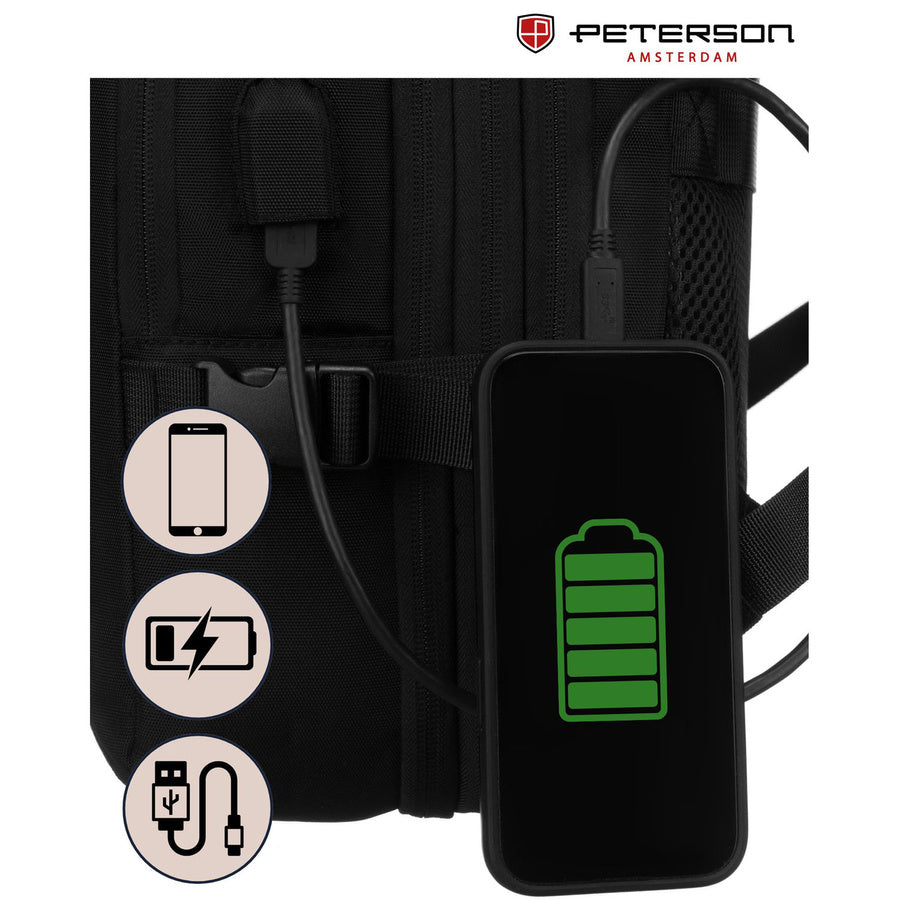 Juoda kelioninė kuprinė „Peterson“ rankiniam lėktuvo bagažui iš patvarios medžiagos K52