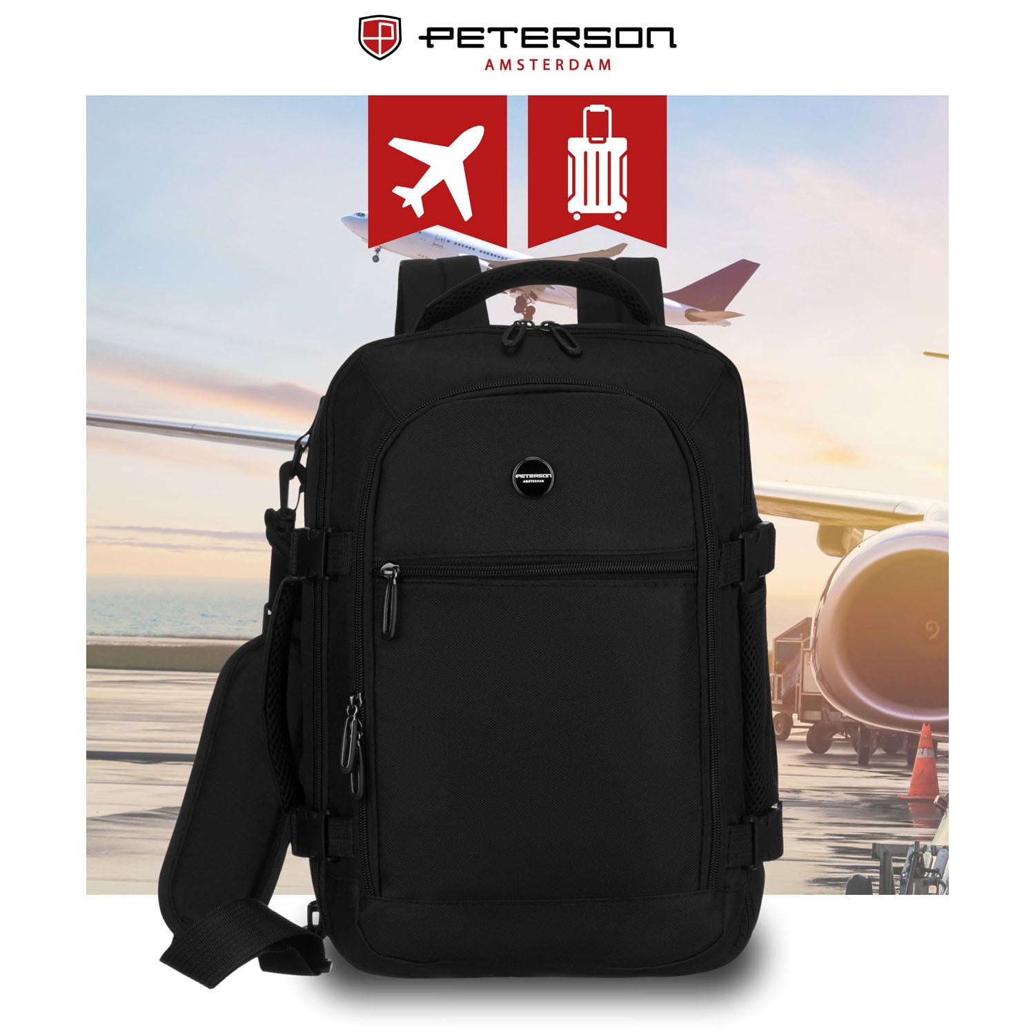 Juoda unisex miesto kuprinė Peterson – praktiška ir talpi kuprinė kasdieniam naudojimui. Pagaminta iš patvaraus poliesterio, tinkama tiek moterims, tiek vyrams, patogiai talpina A4 formato dokumentus ir kasdienius daiktus.