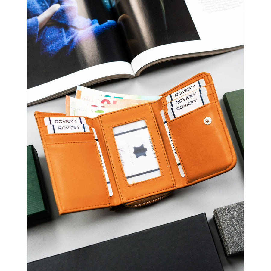 Maža moteriška ruda ekologiškos odos piniginė 4U Cavaldi su užtrauktuku ir spaudele TL8