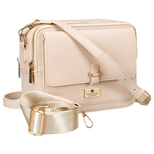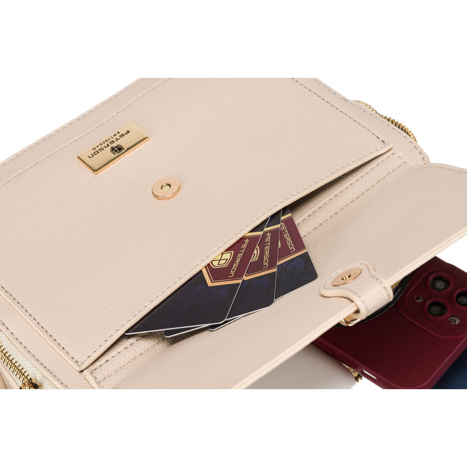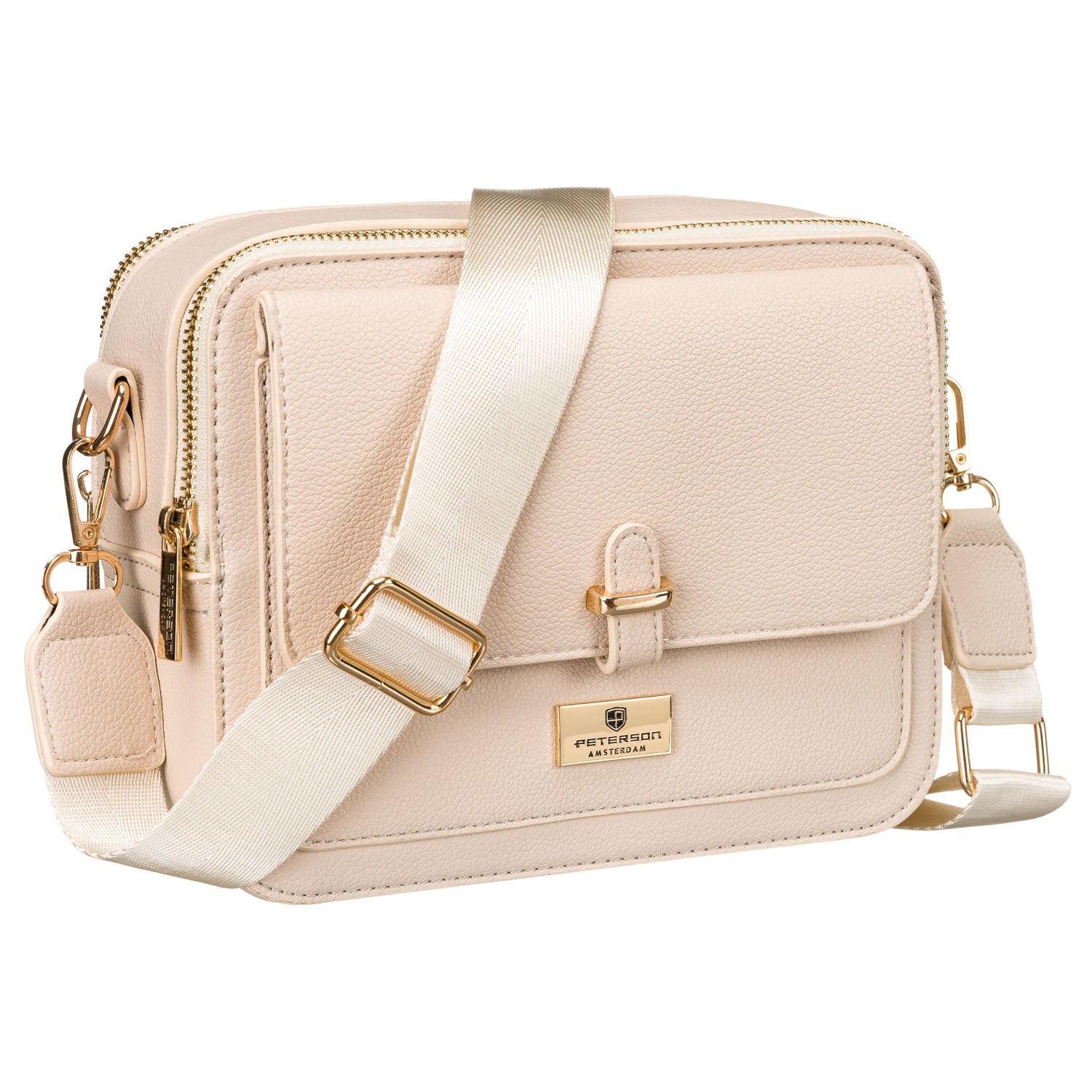 Peterson smėlio spalvos moteriška rankinė iš dirbtinės odos – stilingas ir praktiškas pasirinkimas kasdienai.
