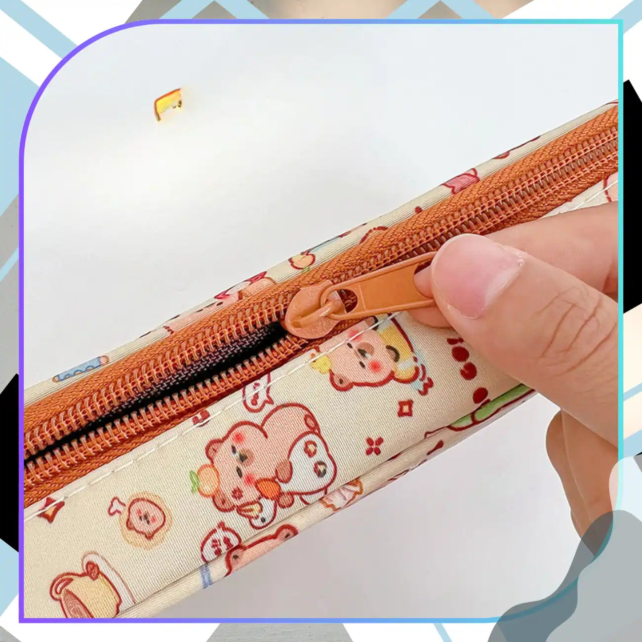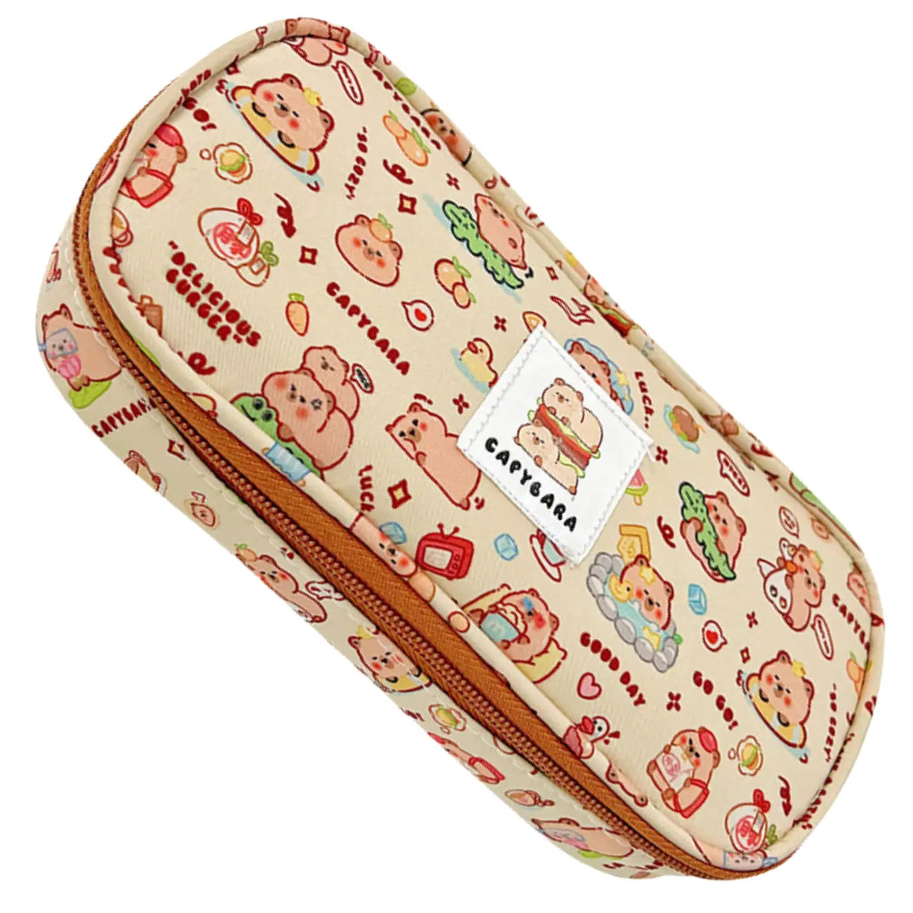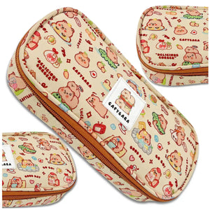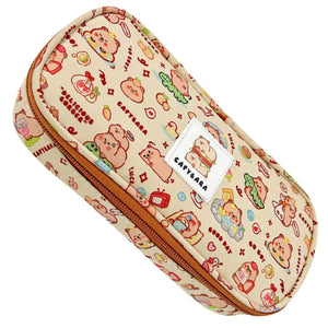 • Motyvas: Spalvingi kapibarų atvaizdai su vaisiais, puodeliais ir širdelėmis suteikia penalui žaismingumo.
