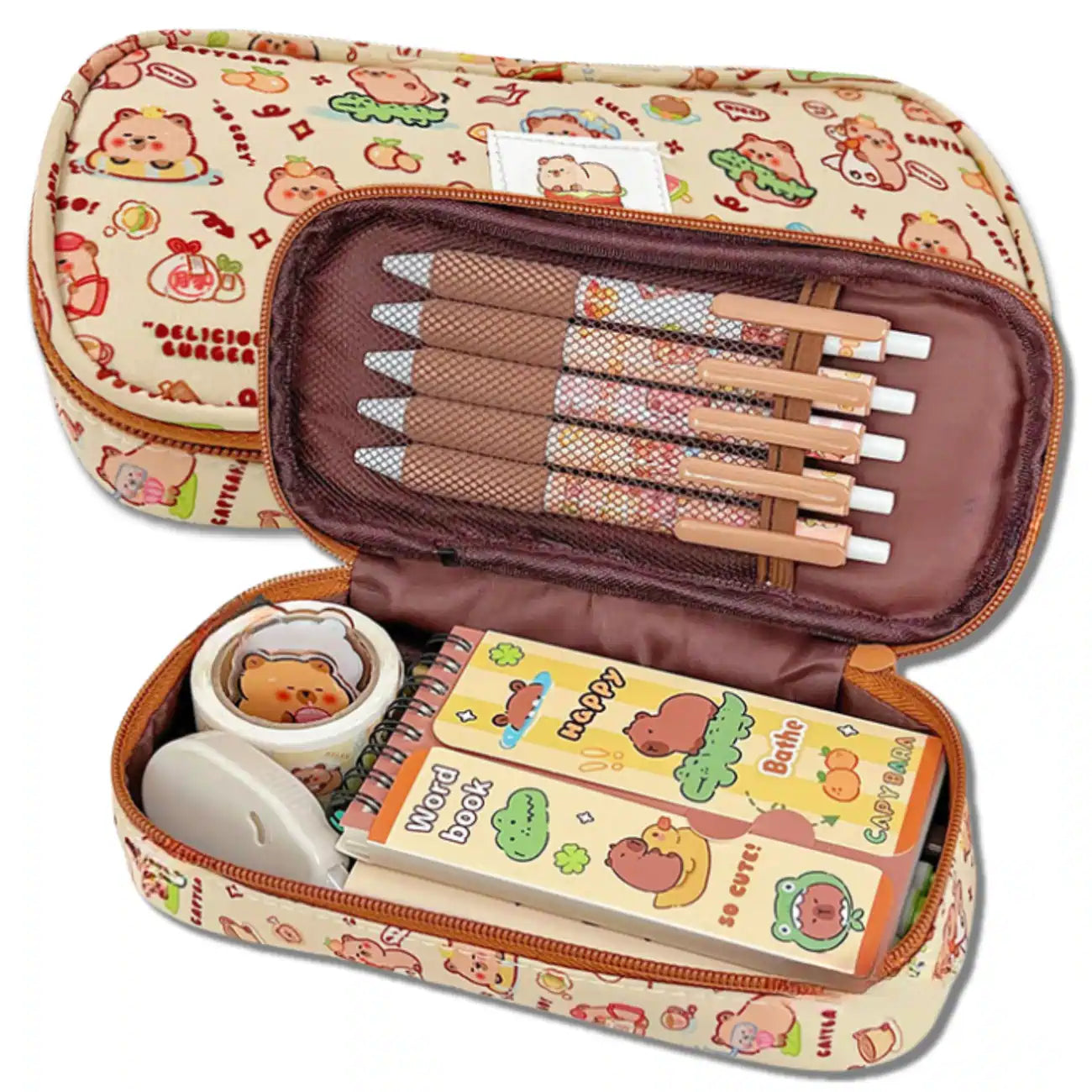 Šis žavingas penalas su kapibarų motyvu yra puikus pasirinkimas mokyklai ar kasdieniam naudojimui. Jo dizainas ir funkcionalumas patiks tiek vaikams, tiek suaugusiems.