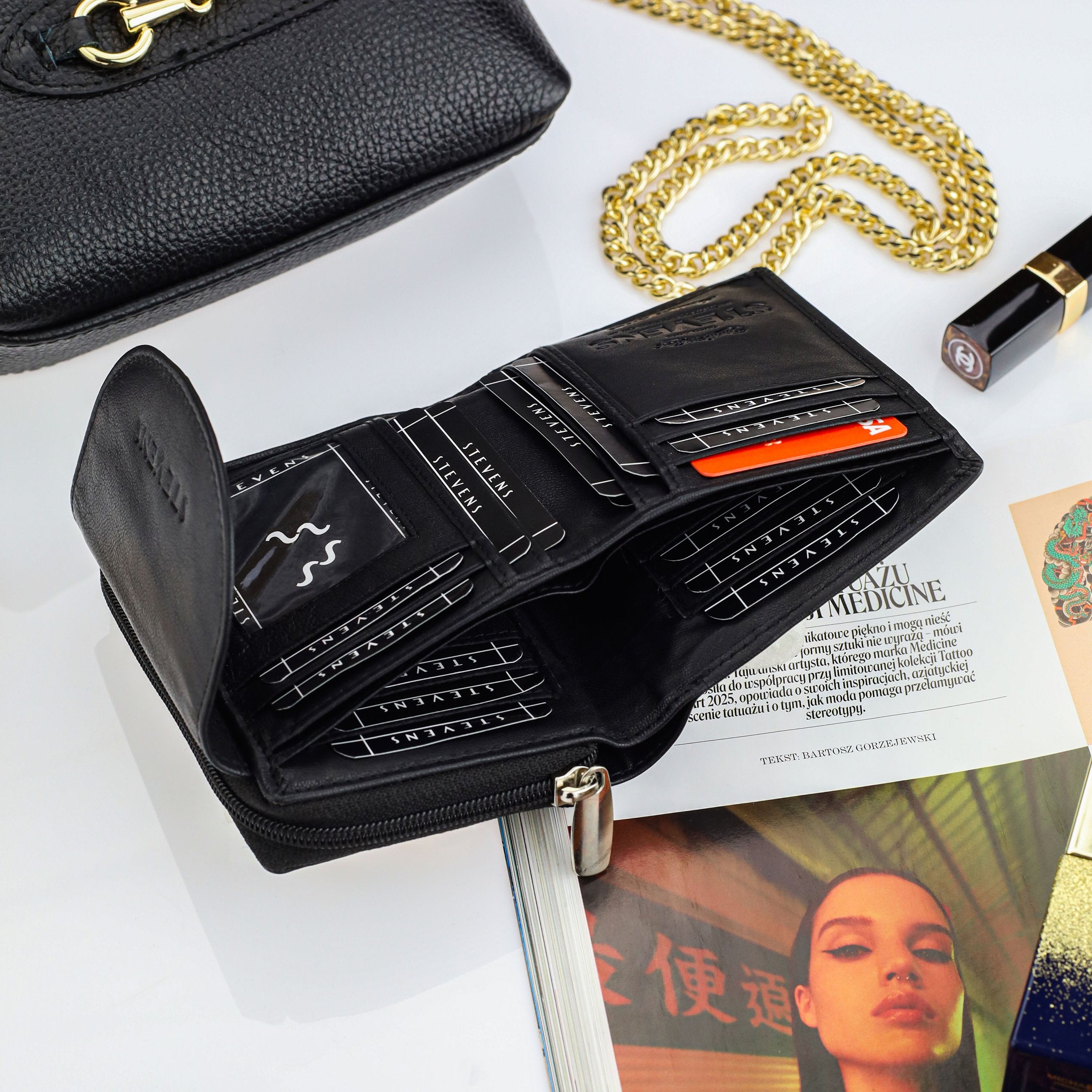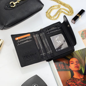 Moteriška odinė piniginė Stevens, juoda, su RFID apsauga Z01-D03