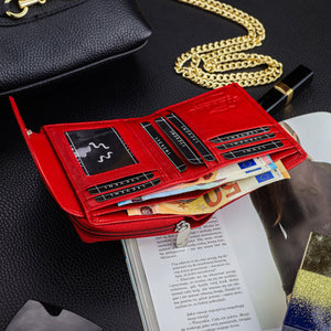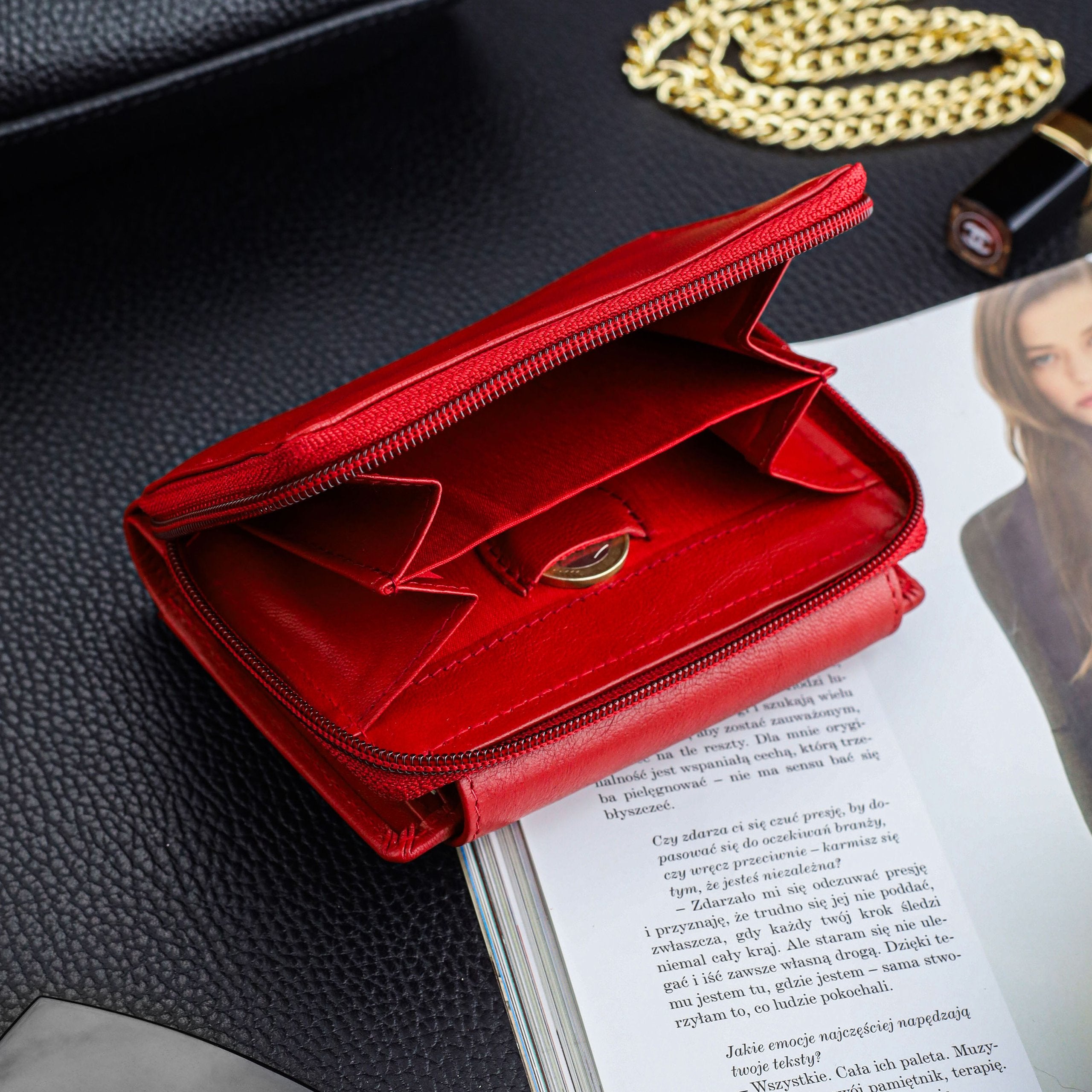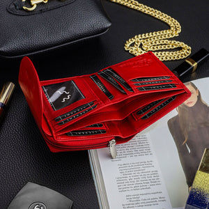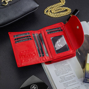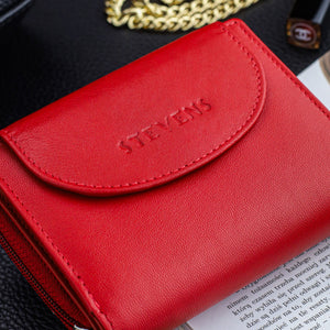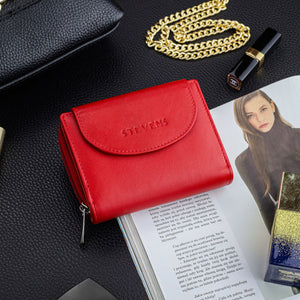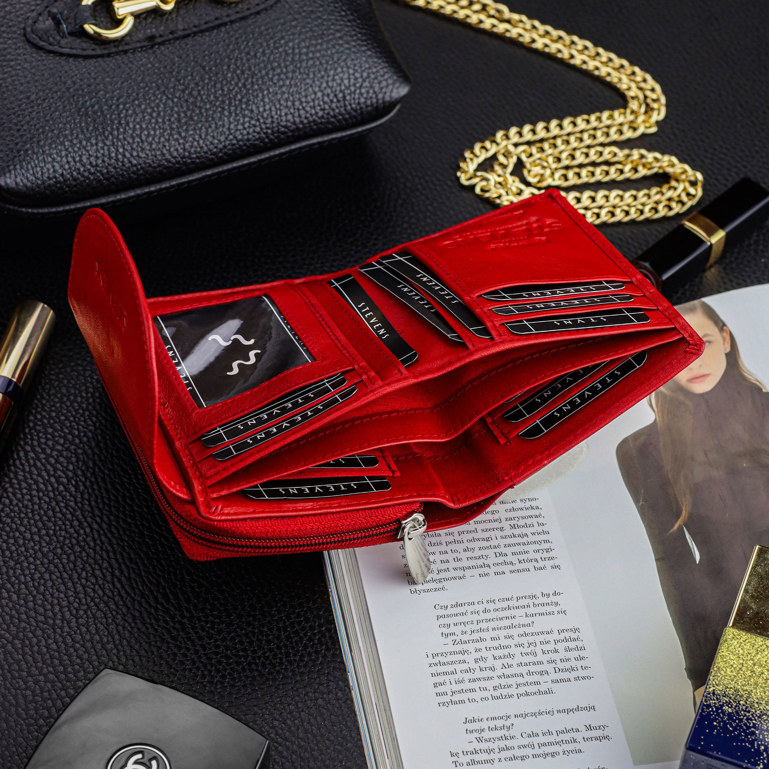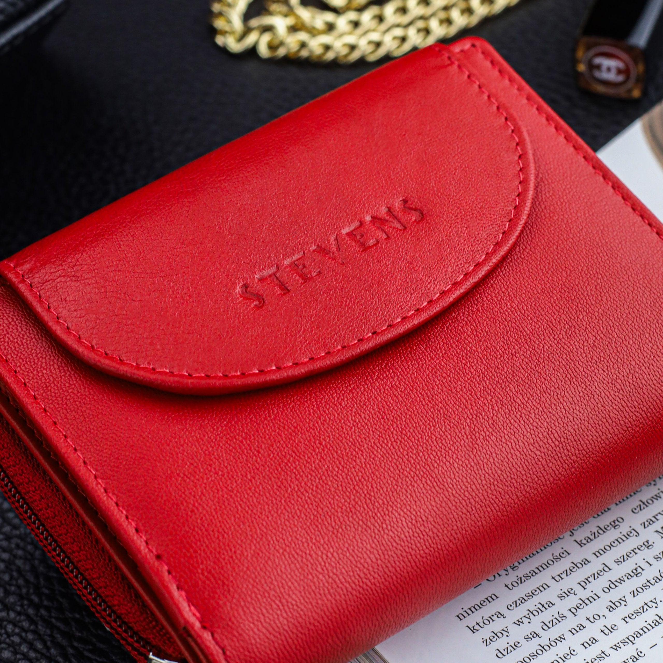 Moteriška odinė piniginė Stevens, raudona, su RFID apsauga Z01-D03