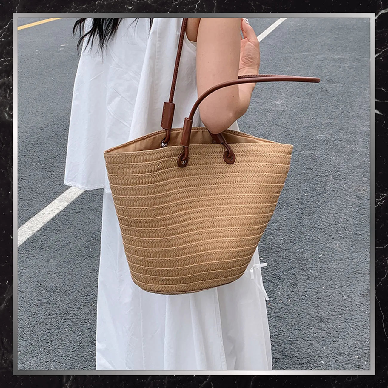 Didelė šiaudinė moteriška rankinė vasarai