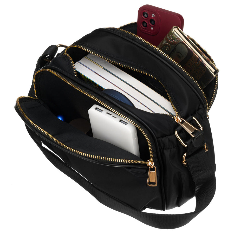Moteriška juoda nailoninė rankinė per petį (crossbody) – lengva, patogi kasdieniam naudojimui. Tvirta nailono medžiaga, praktiškas skyrių išdėstymas ir kompaktiškas dydis.