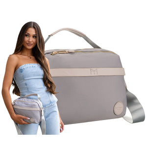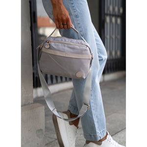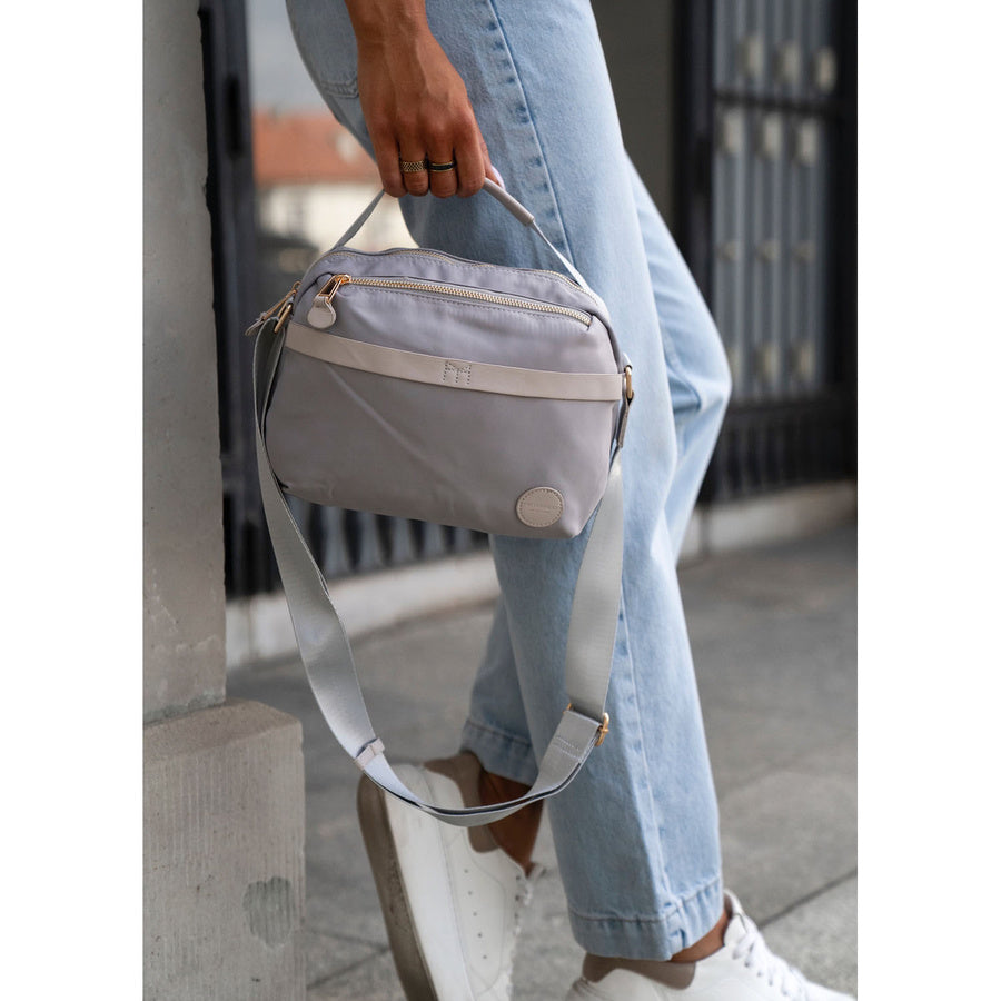 Moteriška nailoninė rankinė per petį (crossbody), pilka, su užtrauktuku