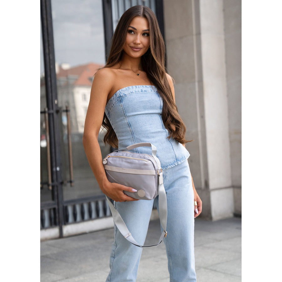 Moteriška „Peterson“ nailoninė rankinė per petį, pilka, su užtrauktuku P13