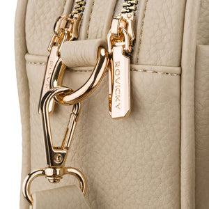 Moteriška „Rovicky“ crossbody tipo paštininko rankinė su užtrauktukinėmis kišenėmis, smėlio spalvos, iš ekologiškos odos P42