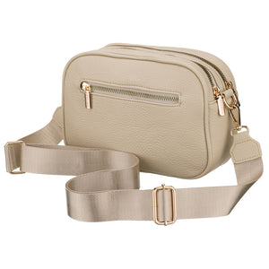 Smėlio spalvos crossbody rankinė per petį su užtrauktukais