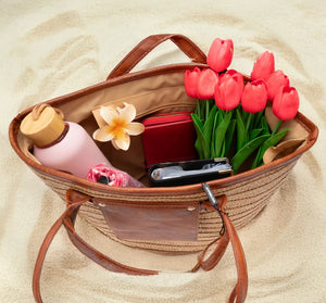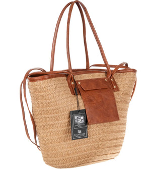 Ši elegantiška ir praktiška rankinė iš Bad&Bags yra puikus pasirinkimas vasaros sezonui. Pagaminta iš aukštos kokybės pintos sintetinės medžiagos, ji pasižymi natūralia/bežine spalva su rudos spalvos detalėmis, suteikiančiomis išskirtinį stilių.