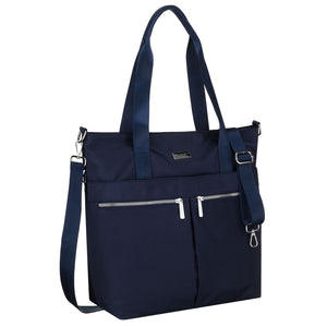 Moteriška tamsiai mėlyna vieno skyriaus poliesterio shopper rankinė „Peterson“ su reguliuojamu, nuimamu dirželiu P40