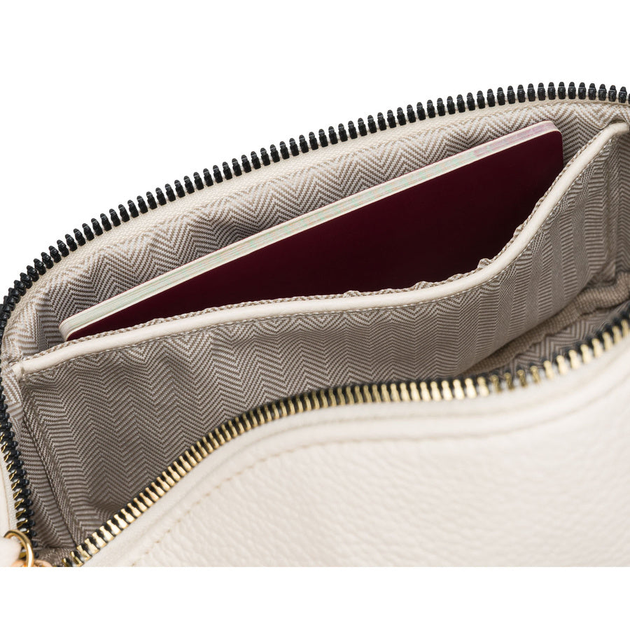 - 1 pagrindinis skyrius su užtrauktuku – telpa telefonas, piniginė, dokumentai, kosmetika