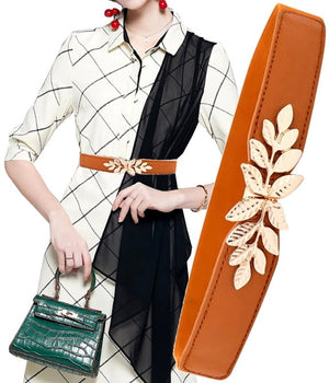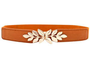 Elegantiškas moterų elastinis diržas, lapų sagtis