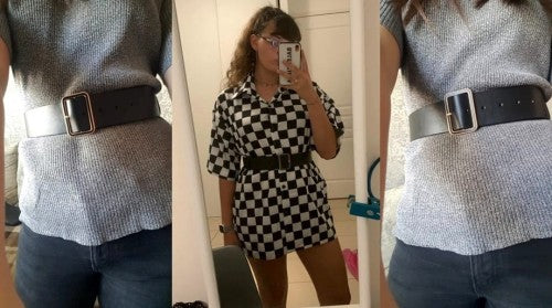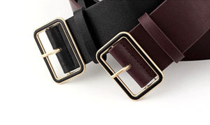 * Diržas su kvadratine metaline sagtimi, aukso spalvos įdėklas ant sagties, minkšta ekologiška oda