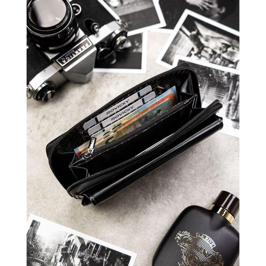Natūralios odos delninė/piniginė vyrams Rovicky, juoda 043-NBAR