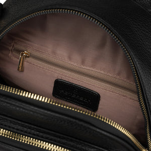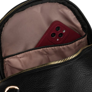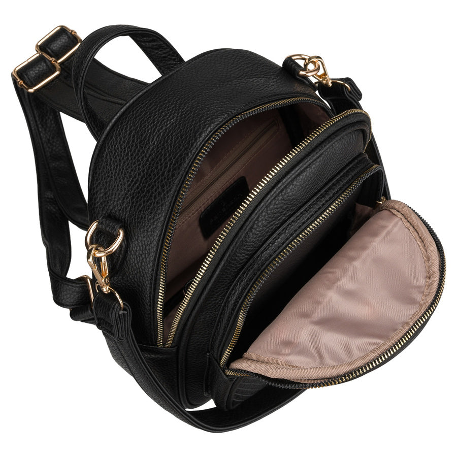 Mažas moteriškas kuprinės tipo krepšys iš ekologiškos odos, juodas