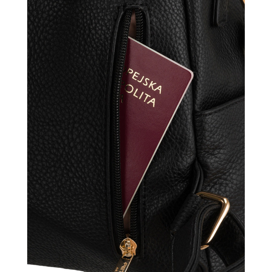Peterson moteriška maža miesto kuprinė–rankinė 2in1 per petį, juoda, iš ekologiškos odos D92