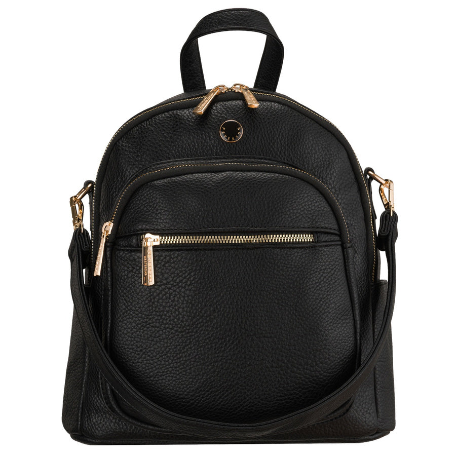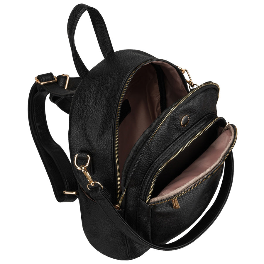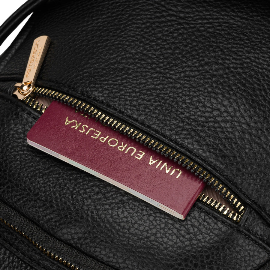 Maža moteriška kuprinė iš ekologiškos odos, juoda (2in1)