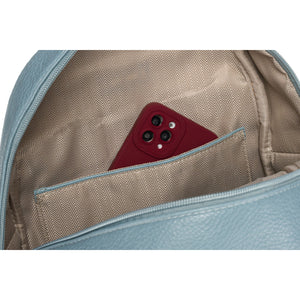 Peterson moteriškas mėlynas mažas kuprinis iš ekologiškos odos, puikiai tinkantis kasdieniam naudojimui.