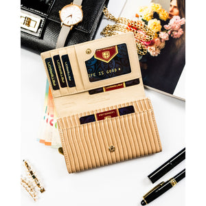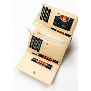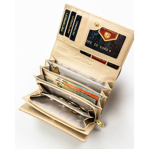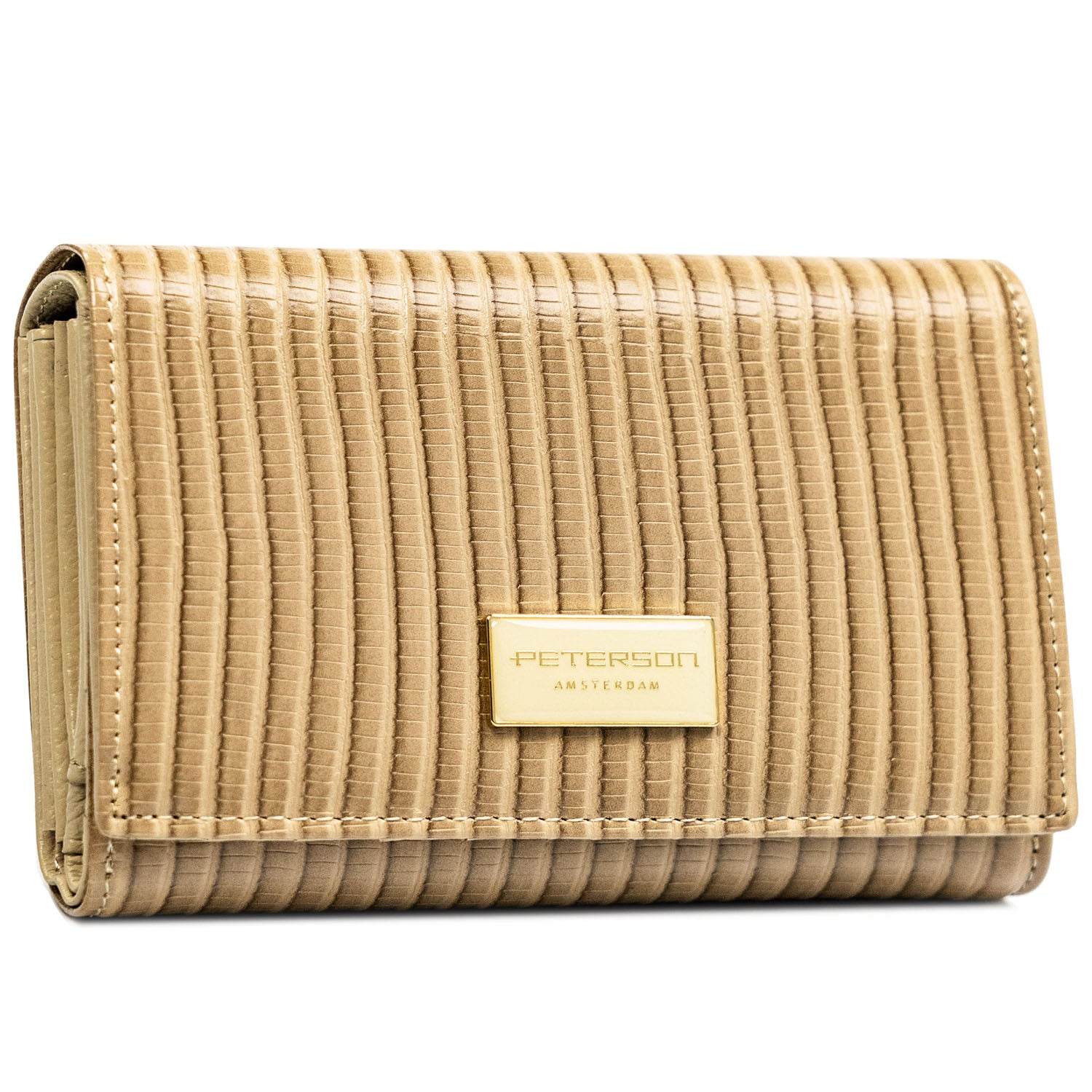 Peterson moteriška piniginė iš dirbtinės odos, smėlio spalvos, su užsegimu ir RFID apsauga.