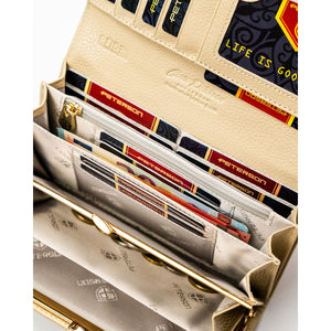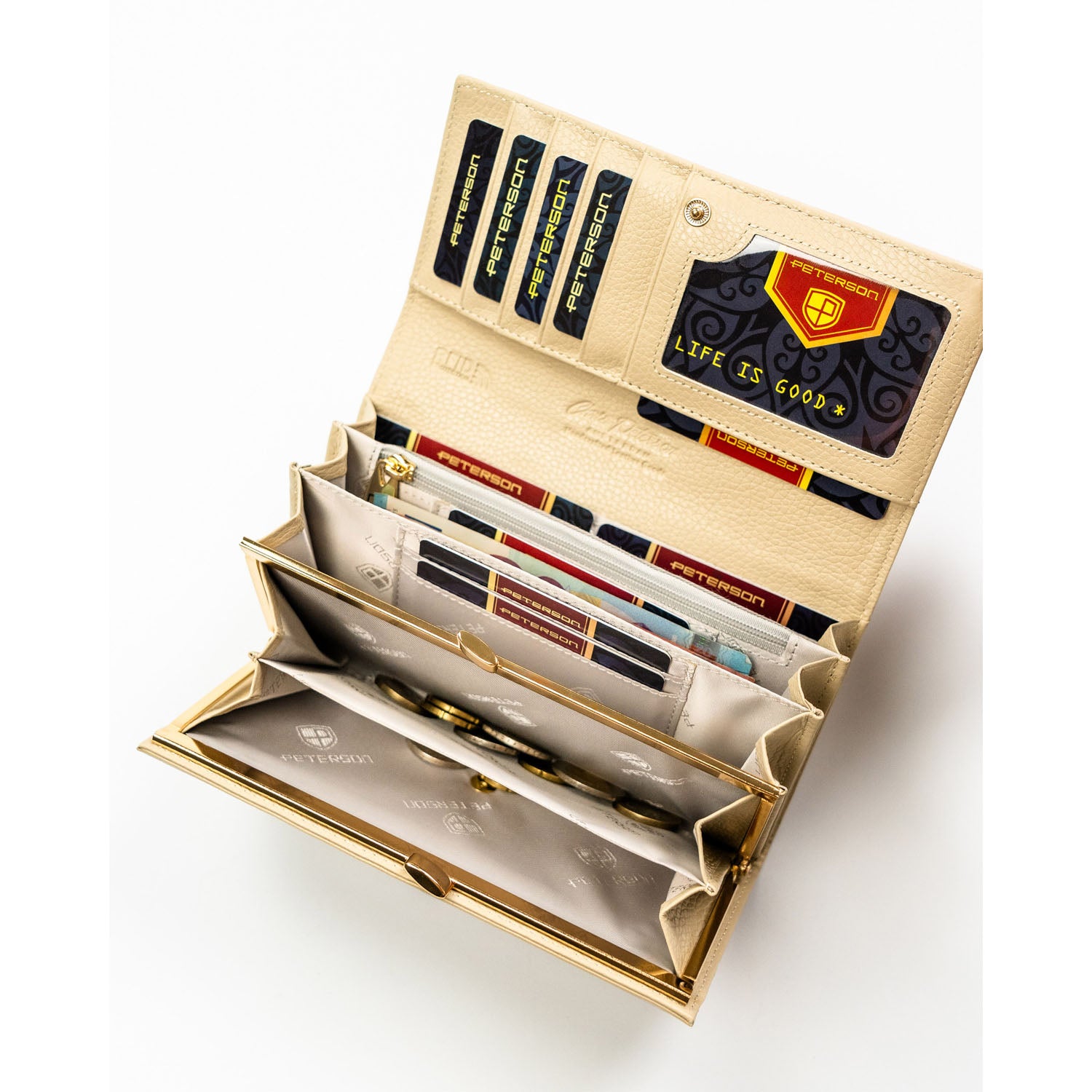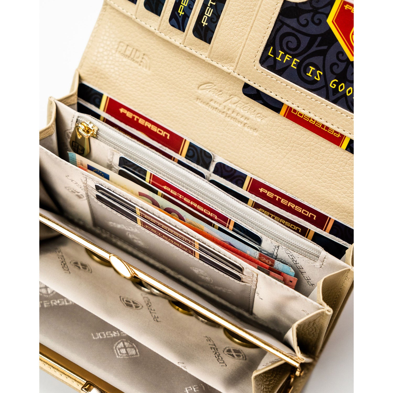Peterson moteriška piniginė iš dirbtinės odos, smėlio spalvos, su RFID apsauga.