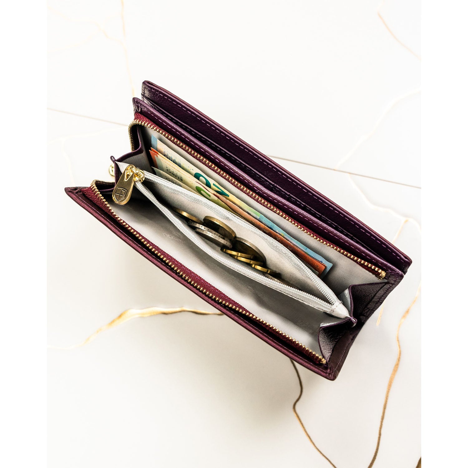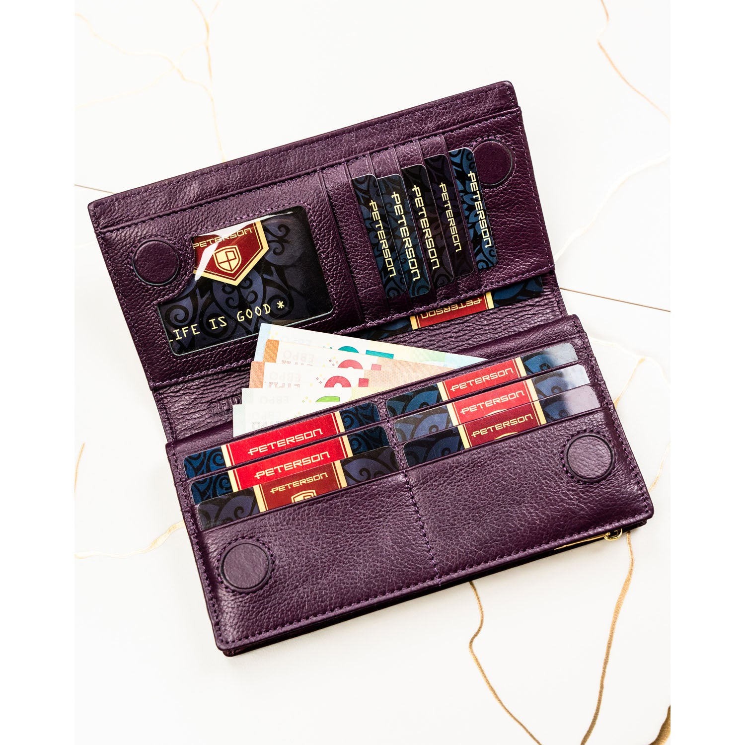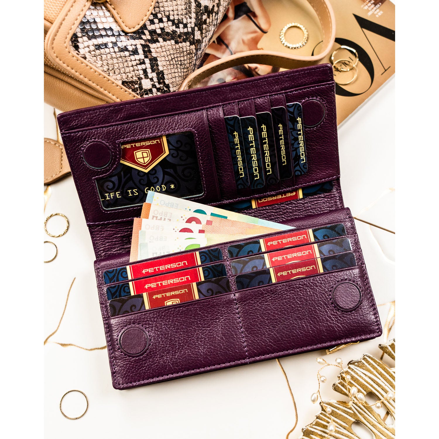 Peterson moteriška piniginė iš dirbtinės odos, Violetinės spalvos, su RFID apsauga.