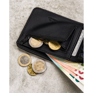 - 6-10 kortelių skyreliai ir užtraukiama kišenė monetoms.