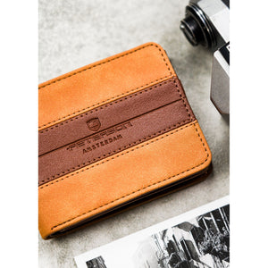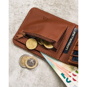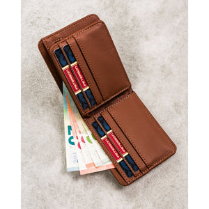 - Turi 6-10 kortelių skyrelius ir užtraukiamą kišenę monetoms.
