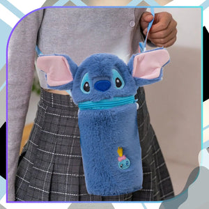Pliušinis butelio dėklas su animacinio filmo personažu