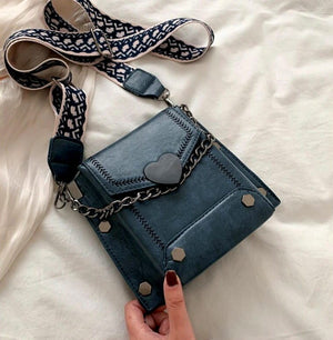 * Joje yra vienas skyrius, užsegamas metaliniu juodos širdelės formos užsegimu.
