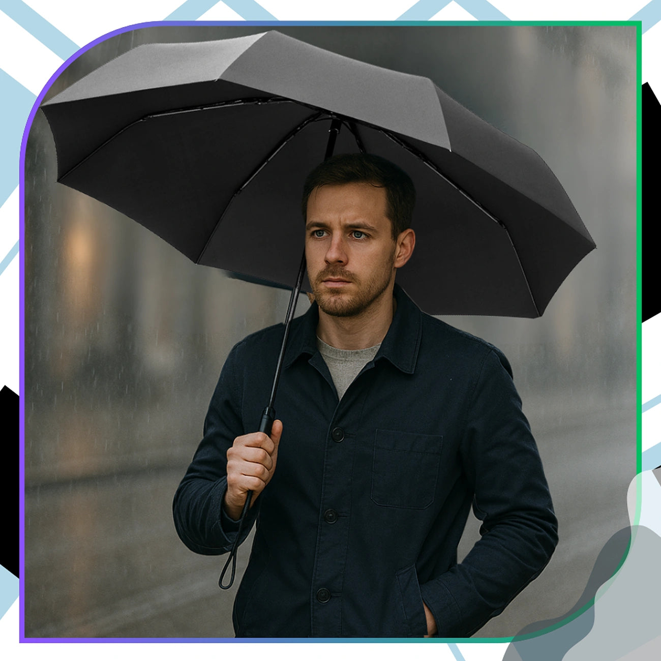 Elegantiškas juodas skėtis su tvirta konstrukcija ir dvigubais strypais, užtikrinančiais apsaugą nuo vėjo. Skėtis turi patogią plastikinę rankeną su automatiniu atidarymo ir uždarymo mygtuku. Pridedamas lengvas dėklas. Puikiai apsaugo nuo lietaus ir saulės. Atsparus vandeniui audinys taip pat efektyviai blokuoja UV spindulius.