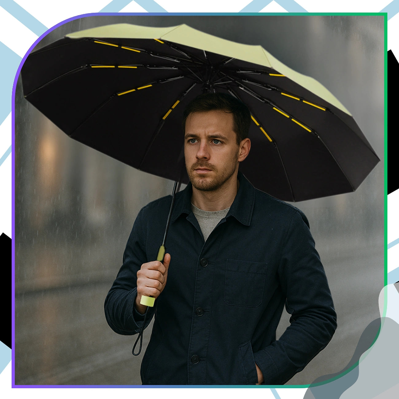 Naujas elegantiškas sulankstomas skėtis – žalias skėtis su juodu vidumi ir oranžinėmis detalėmis yra puikus stiliaus, patvarumo ir modernios funkcionalumo derinys. Šis išskirtinis automatinis skėtis sukurtas taip, kad atlaikytų bet kokį orą – nuo stipraus lietaus iki stipraus vėjo, užtikrinant maksimalų naudojimo komfortą. Konstrukcija sustiprinta dvigubais strypais, kurie žymiai padidina atsparumą pažeidimams ir vėjo gūsiams. Dėl to skėtis išlieka stabilus net ir sudėtingomis oro sąlygomis. Net 12 brytų sukuria tvirtą, plačią kupolą, kurios skersmuo 105 cm, efektyviai apsaugo nuo lietaus vieną ar dvi žmones. Audinys pagamintas iš vandeniui atsparios hidrofobinės medžiagos ne tik atstumia vandenį, bet ir efektyviai blokuoja UV spindulius. Dėl to šis modelis taip pat tinka kaip saulės skėtis, idealus vasaros dienoms. Žalia apdaila suteikia gaivumo ir modernaus charakterio, kuris puikiai dera tiek su kasdieniais, tiek su elegantiškais drabužiais. Skėtis turi patogią, ergonomišką rankeną, todėl jį lengva nešiotis. Mygtukas rankenoje leidžia automatiškai atidaryti ir sulankstyti skėtį vienu judesiu – greitas, paprastas ir praktiškas sprendimas, tinkantis bet kurioje situacijoje. Sulanksčius skėtis yra tik 28 cm ilgio, todėl telpa į rankinę, kuprinę ar nešiojamojo kompiuterio krepšį.