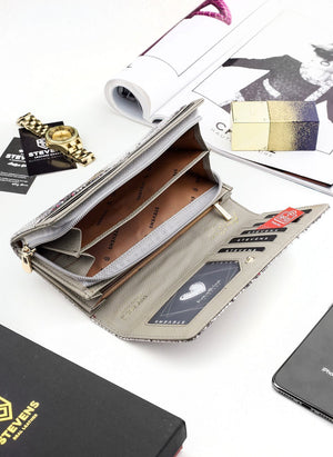 Didelė moteriška piniginė „STEVENS“ pilka + rožinė D1934