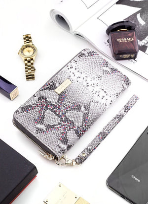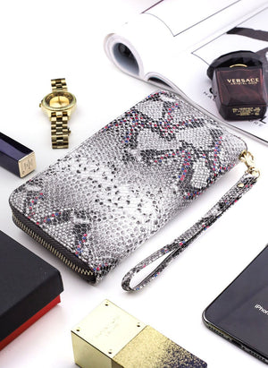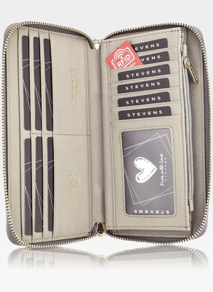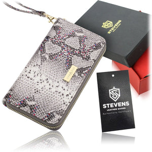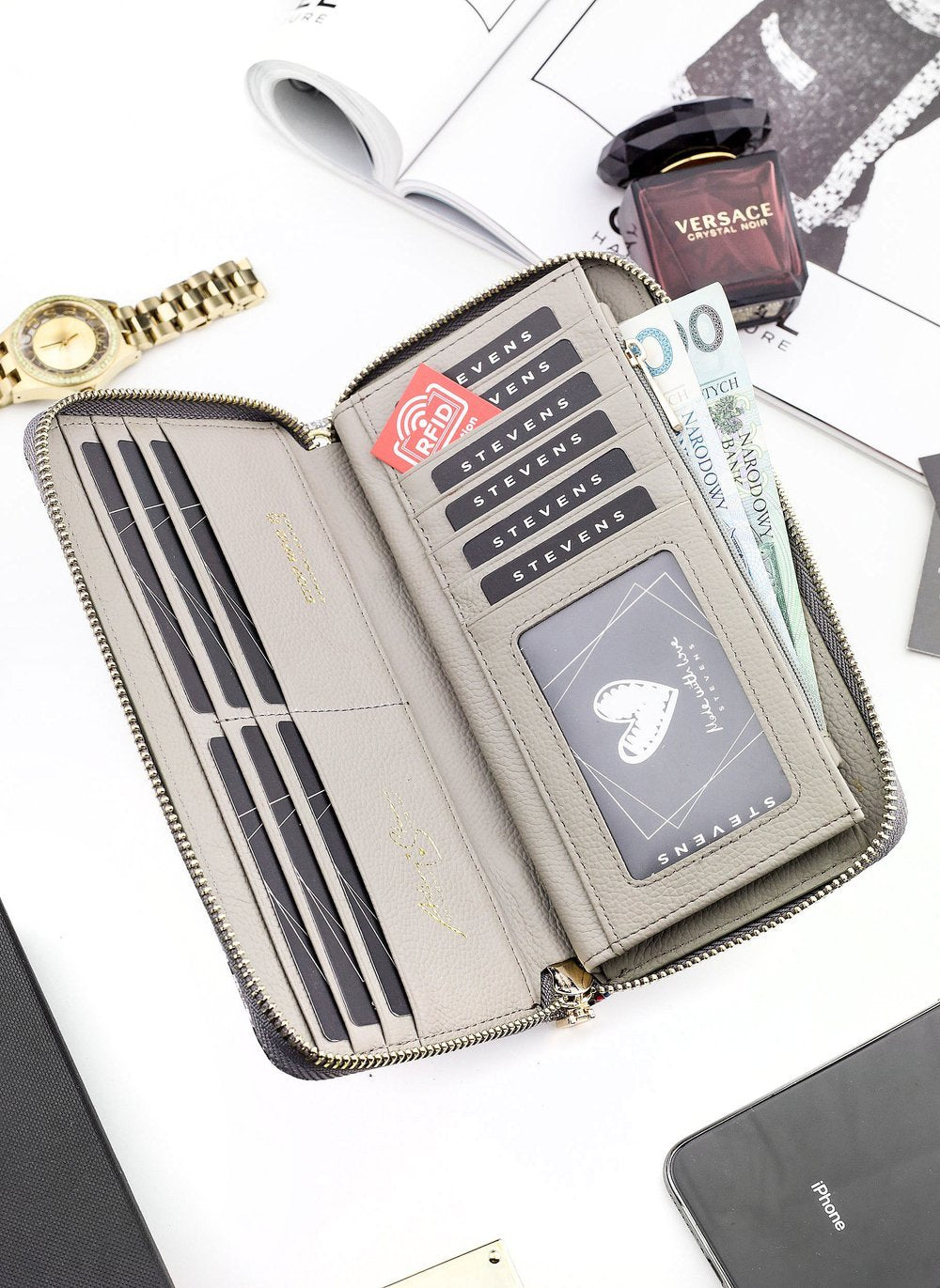 Didelė odinė moteriška piniginė STEVENS pilka + rožinė