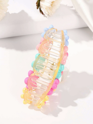 Praturtinkite savo stilių spalva ir žavesiu su mūsų dideliu spalvotu plaukų segtuku, dekoruotu pastelinėmis gėlėmis. Šis boho stiliaus aksesuaras ne tik funkcionalus, bet ir estetiškai patrauklus, suteikiantis jūsų šukuosenai išskirtinumo. Tinka tiek kasdieniam naudojimui, tiek ypatingoms progoms, šis segtukas puikiai derės prie įvairių stilių, pabrėždamas jūsų individualumą.