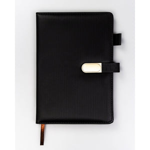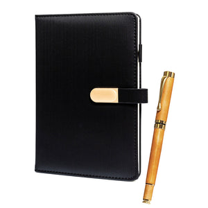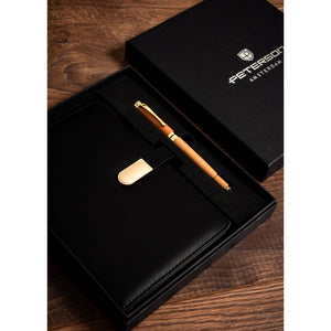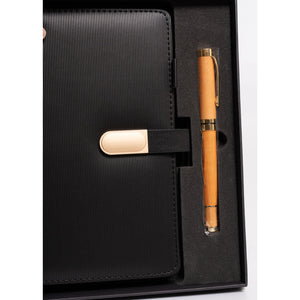 Dovanų rinkinys: juodas elegantiškas A5 sąsiuvinis ir rašiklis su juodu šerdimi