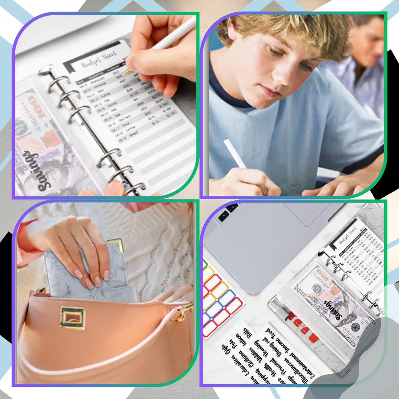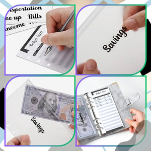 - Komplekte yra 12 skaidrių užtraukiamų vokų pinigams.