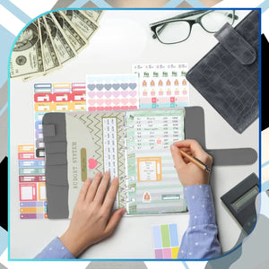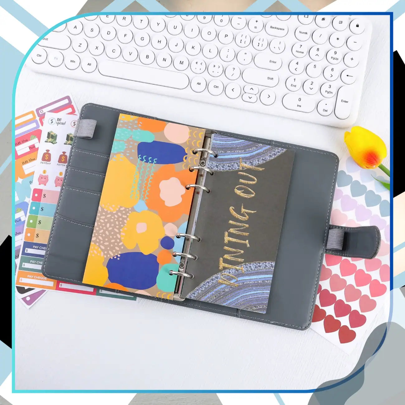 - Komplekte yra 14 skirtukų su spauda, 12 spalvotų vokų, 3 lipdukų lapai, 2 žymeklių lapai ir 1 širdelių lipdukų lapas, padedantys organizuoti ir personalizuoti jūsų planuotoją.