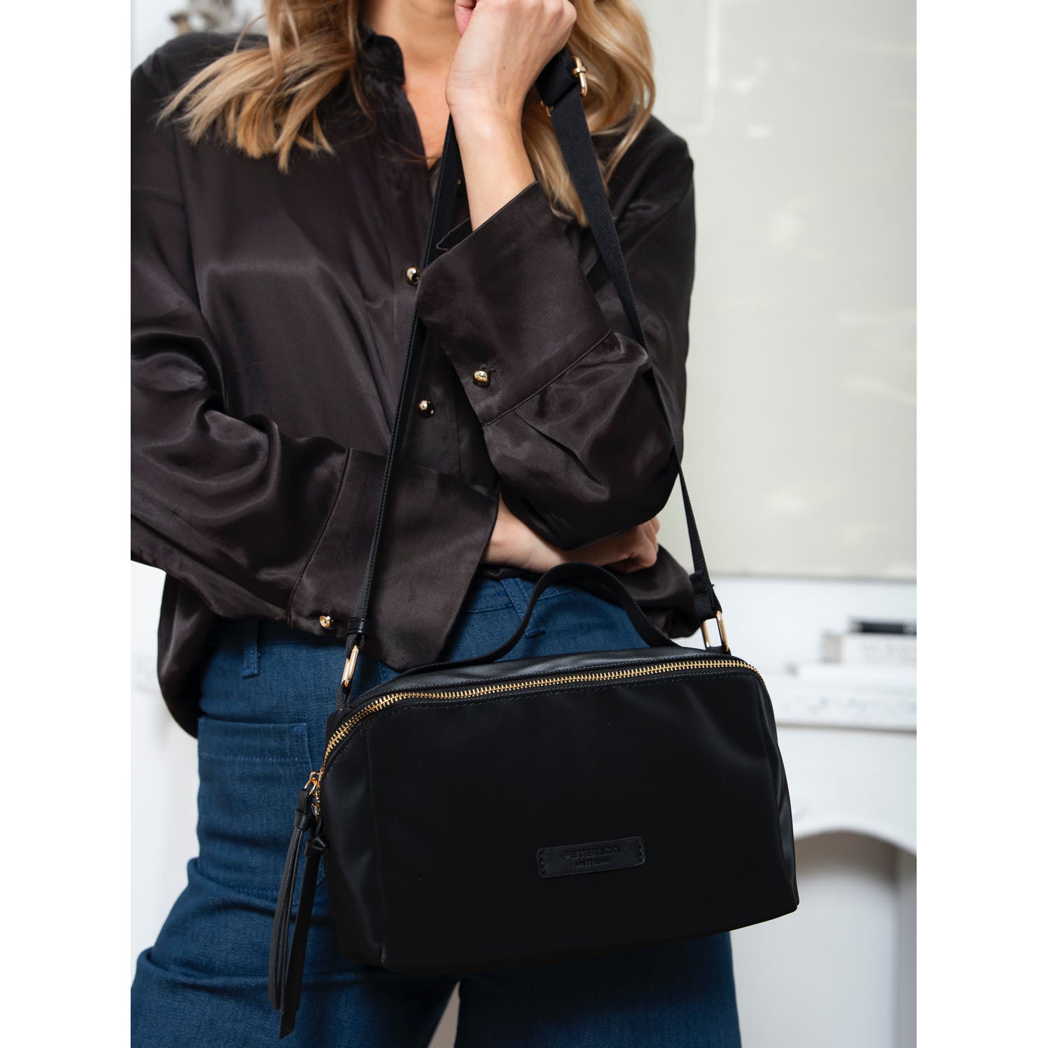 Juoda rankinė per petį, nailonas ir dirbtinė oda