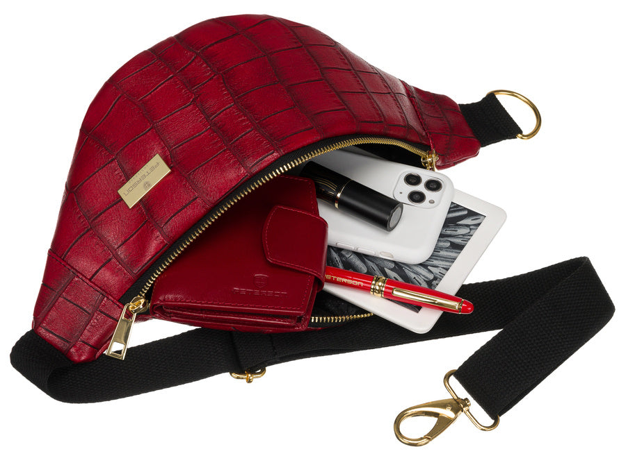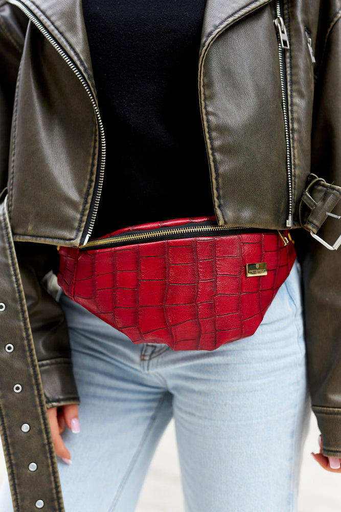 Šis elegantiškas juosmens krepšys yra pagamintas iš aukštos kokybės ekologiškos odos, suteikiančios ilgaamžiškumą ir stilingą išvaizdą. Krepšys yra bordo spalvos, kuri puikiai dera prie įvairių aprangos derinių.