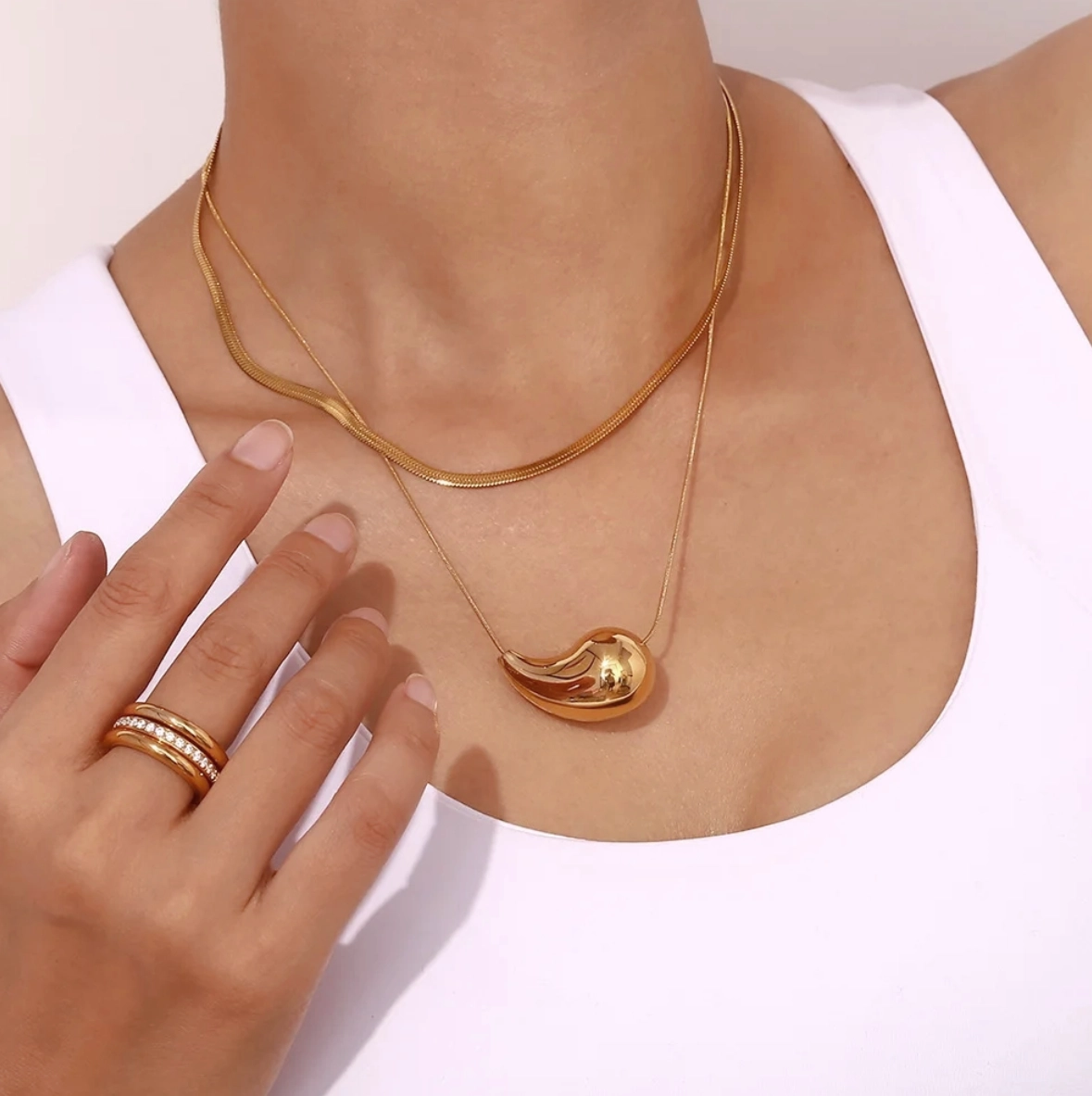 - Grandinėlė su ašarėlės formos pakabuku suteikia subtilumo ir modernumo.