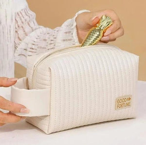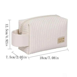 - Šone esanti rankena suteikia patogumo nešiojant kosmetinę.