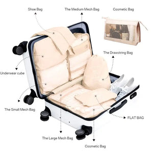 Šis kelionės organizatorių rinkinys yra puikus sprendimas jūsų lagaminui. Jis padės palaikyti tvarką ir lengviau rasti daiktus kelionės metu.