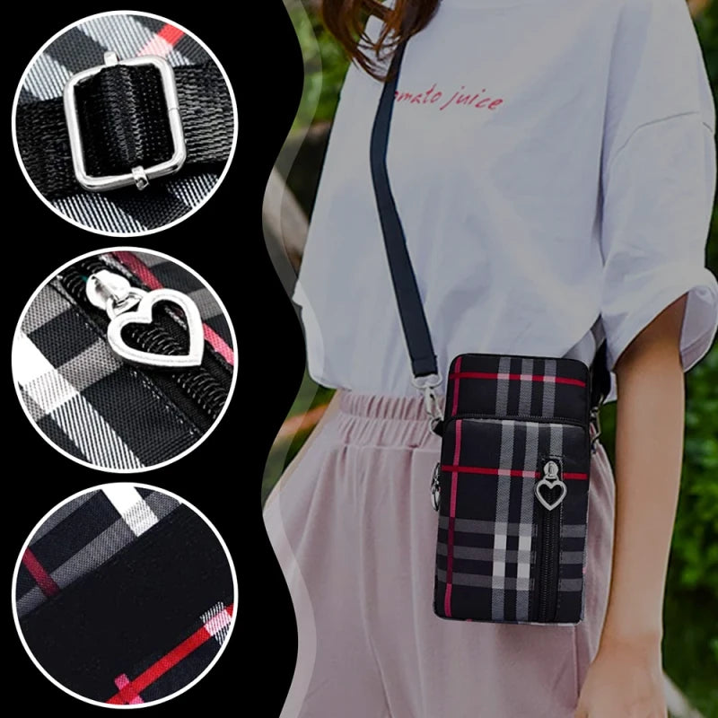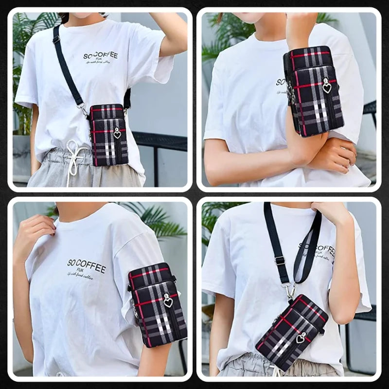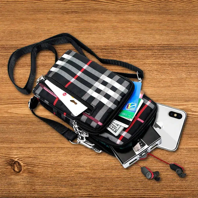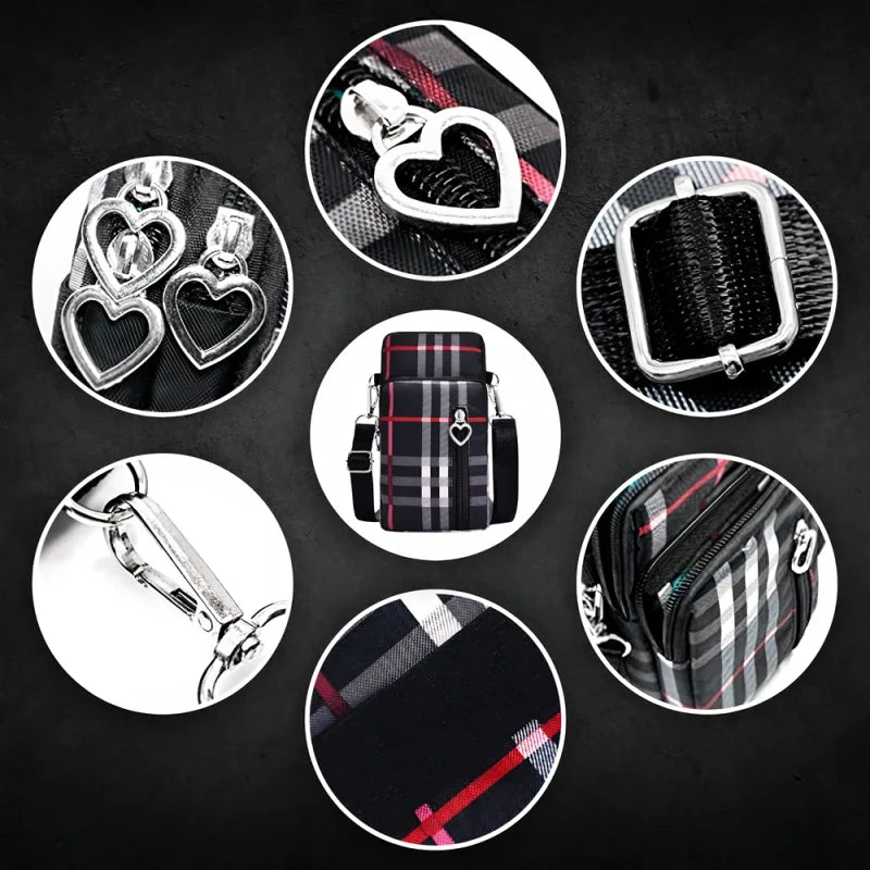 - Talpi telefono rankinė: Pakankamai vietos jūsų telefonui ir kitiems smulkiems daiktams.