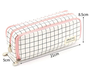 - Erdvus dizainas: Penalo matmenys yra 21 x 7 x 9 cm. Jame yra trys užtrauktuku užsegami skyriai, kurie leidžia patogiai sutalpinti visus mokyklinius ir biuro reikmenis.