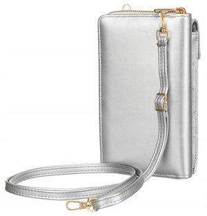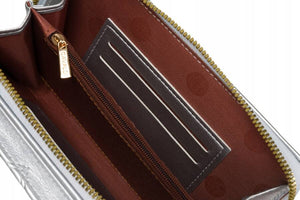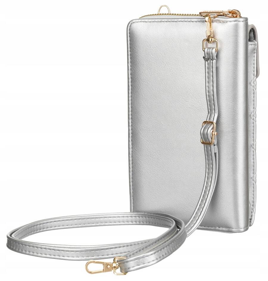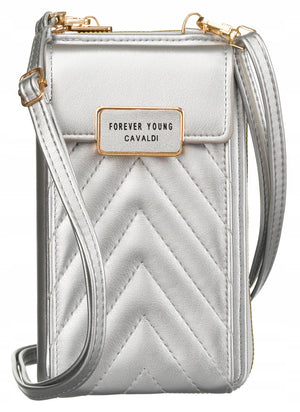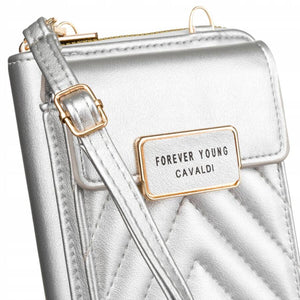 Didelis 4U CAVALDI sidabrinis moteriška rankinė iš ekologiškos odos su užtrauktuku.
