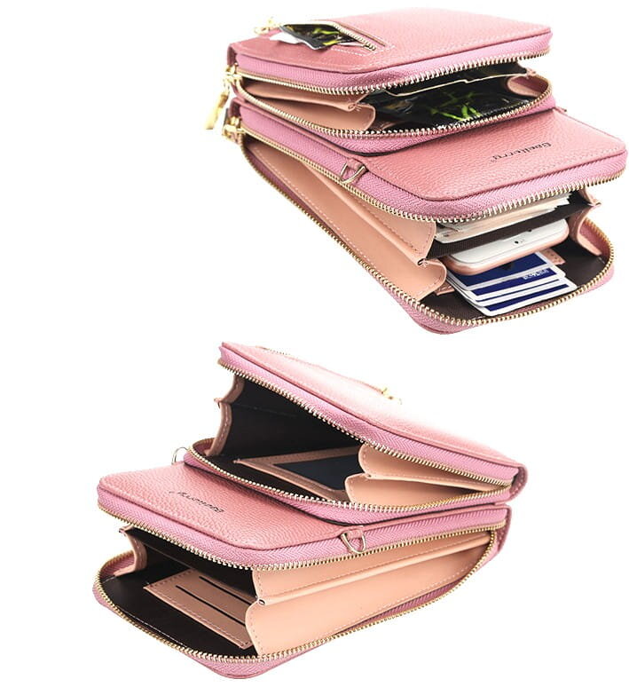 - Vidinė struktūra: Didelėje dalyje yra pertvara ir keturios kišenės kortelėms.