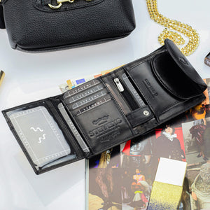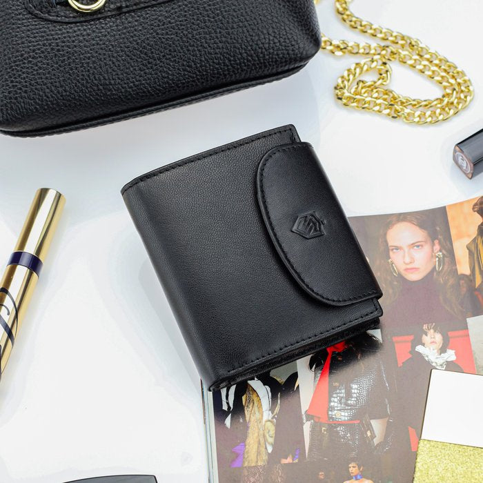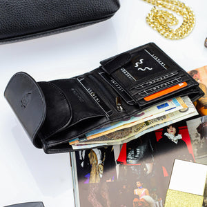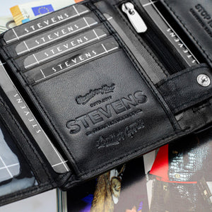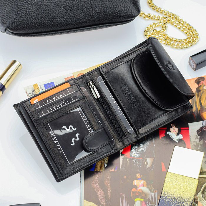 Moteriška odinė piniginė STEVENS, juoda D1871